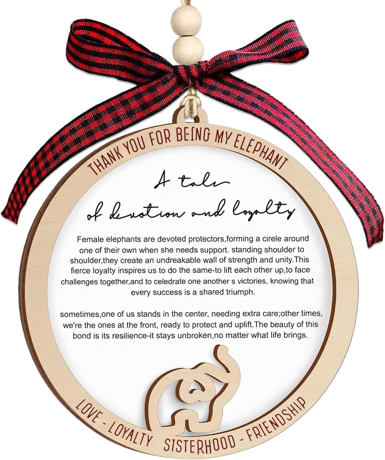 Honor the women who march trunk-in-trunk through life with this 2025 wooden elephant sisterhood ornament. Two intertwined elephants are laser-engraved with “Sisterhood • Loyalty • Tribe Keeper” in flowing script, surrounded by tiny floral motifs symbolizing growth and support. Crafted from sustainable walnut-finish hardwood and finished with a soft suede cord, it’s a daily reminder on the tree (or rearview mirror) that your chosen family is forever—ideal for gal-pals, sorority sisters, or book-club warriors.