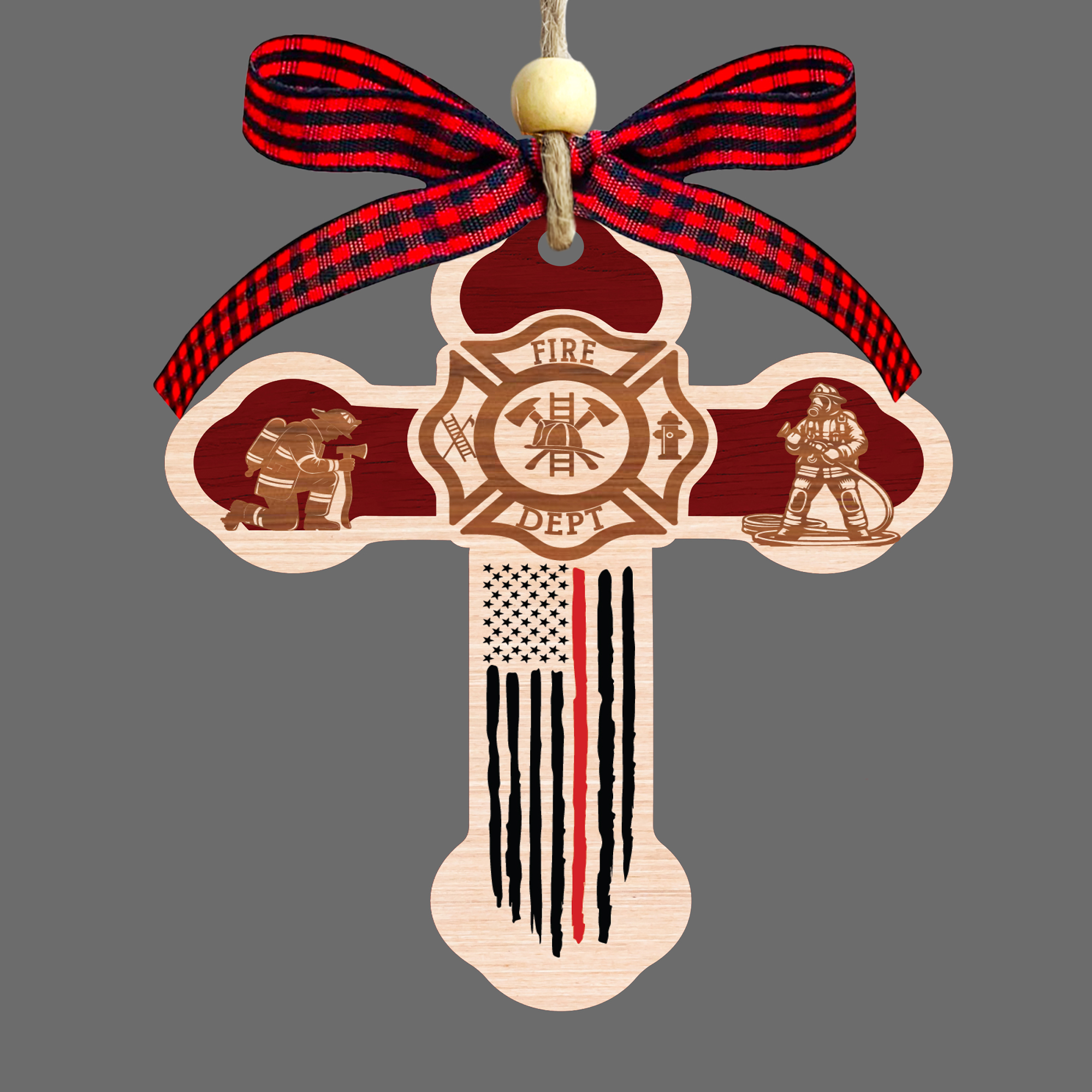 Blend faith and fearless service with this 2025 wooden fire-station cross ornament designed for Christian firefighters. A Maltese cross forms the firehouse silhouette, with a ladder leaning toward a radiant star and the verse “Greater love has no one than this – John 15:13” subtly etched along the beams. Made from reclaimed barn wood for authentic texture, it’s sealed with a weather-resistant matte finish and hung by a braided leather cord. A sacred keepsake for chaplains, retired smoke-eaters, or families who pray for safe returns.