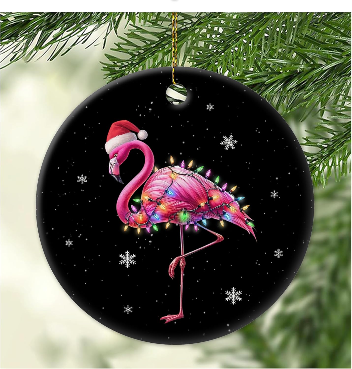 Stand tall and pink this Christmas with a 2025 ceramic flamingo ornament that brings beachy vibes to the evergreen. Hand-painted in glossy flamingo-pink with black-tipped beak and spindly legs, it’s accented by a tiny Santa hat and candy-cane stripe scarf. Fired at high temperature for durability and shine, complete with a gold cord loop and protective felt backing. A splash of summer for bird collectors, Florida snowbirds, or anyone who believes the holidays should always include a little “flocking” fabulous.