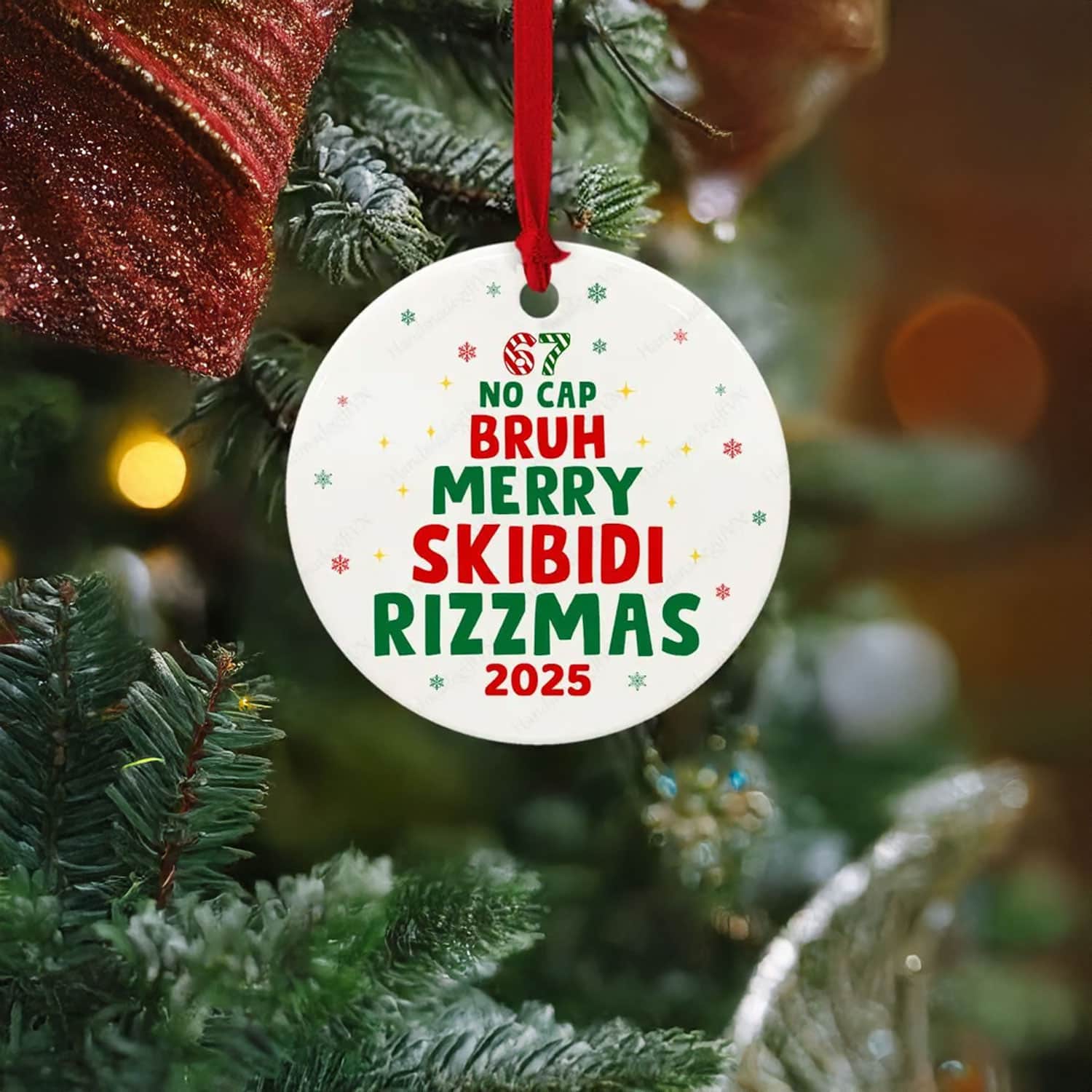 Bring the ultimate Gen Z energy to your holiday décor with this Funny Gen Z Teen Slang Christmas Ornament. Featuring bold phrases like “No Cap,” “Bruh,” and “Skibidi Rizzmas,” along with a playful Six Seven touch, this ornament is perfect for teens, meme lovers, and anyone who enjoys modern internet humor. A standout and hilarious addition to any Christmas tree, making it a great 2025 holiday gift for friends, siblings, and youth who live for the latest trends.