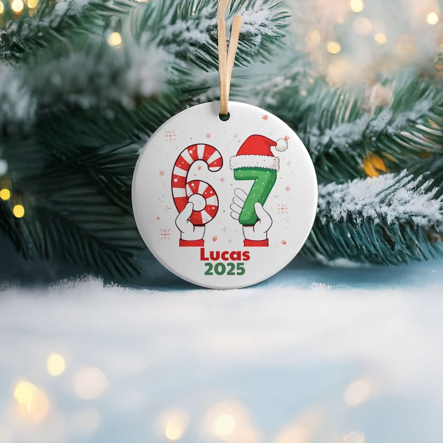 Celebrate the holidays with this Funny Teen Grandkid Slang “Six Seven” Ornament — a cute and trendy design featuring candy-cane and holiday-green numbers held up by festive cartoon hands. Perfect for teens, grandkids, and anyone who loves the viral Six Seven Christmas trend, this ornament adds humor, personality, and seasonal charm to any Christmas tree. A great 2025 gift and a fun keepsake for family holiday memories.