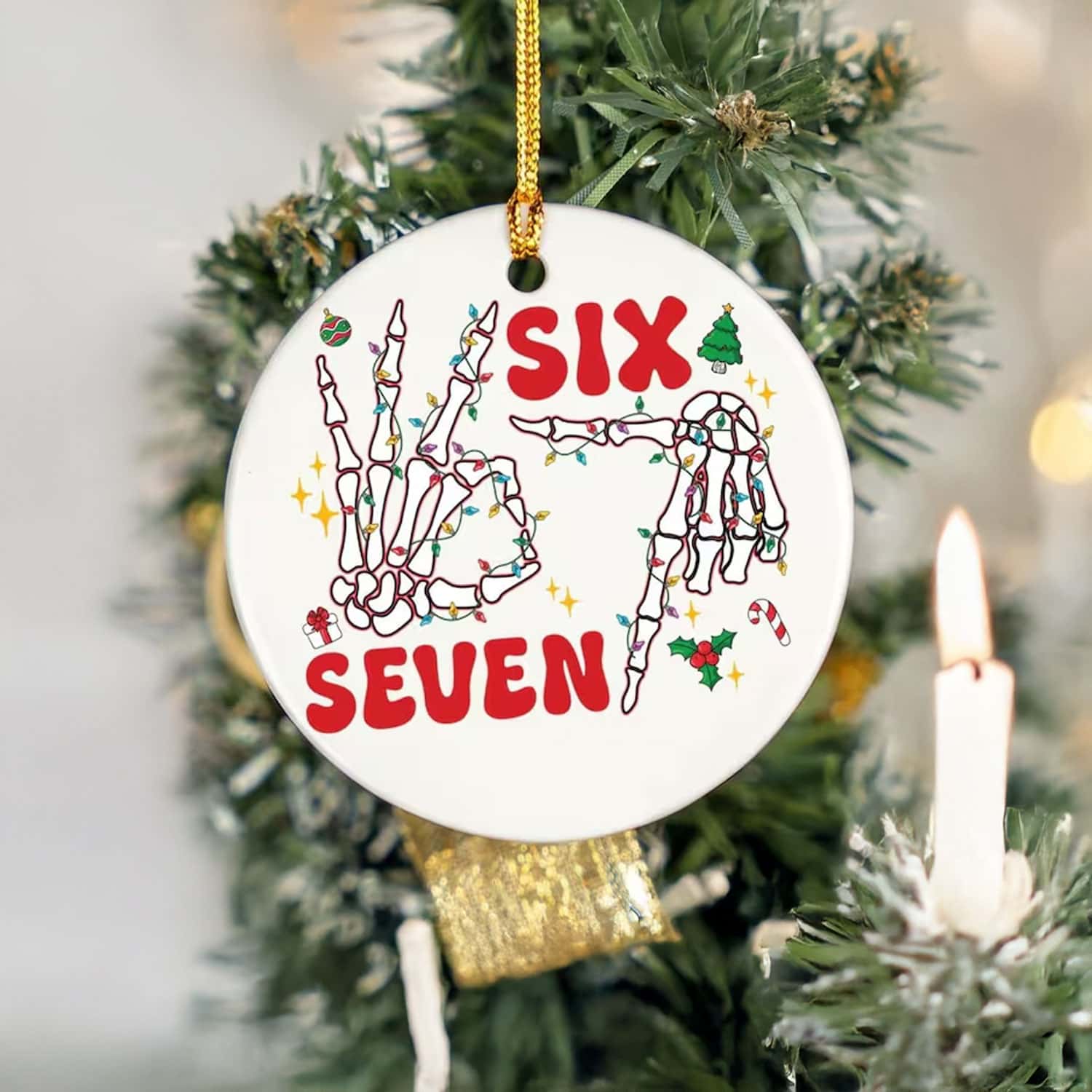 Add a quirky and festive touch to your tree with this Six Seven Funny Christmas Ornament. Featuring skeleton hand signs wrapped in colorful holiday lights and bold “Six Seven” lettering, this ornament is perfect for teens, meme lovers, and anyone who enjoys playful Christmas décor. A unique holiday keepsake gift for 2025 and a standout addition to any Six Seven Christmas collection.