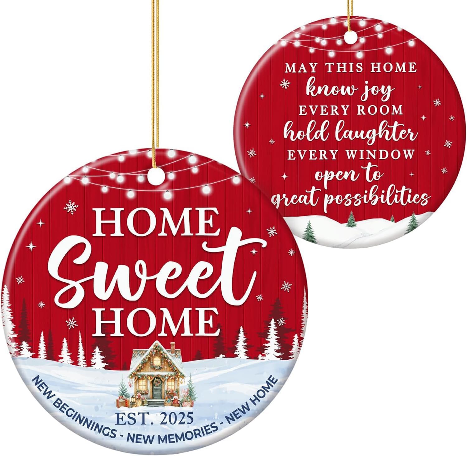 Welcome new beginnings with the elegant ceramic “Home Sweet Home” 2025 ornament! Designed for new homeowners celebrating their first holiday in a fresh space, this heartfelt Christmas tree decoration symbolizes warmth, joy, and fresh starts. Crafted from high-quality ceramic with glossy finish and intricate house detailing, it’s a timeless keepsake. Perfect housewarming gift paired with Christmas cheer – hang it proudly to mark milestones like moving in or renovations. Great for real estate agents gifting clients or families starting anew. Elevate your holiday decor with this sentimental piece in 2025. Keywords: new home ornament 2025, ceramic Christmas keepsake, housewarming holiday gift.