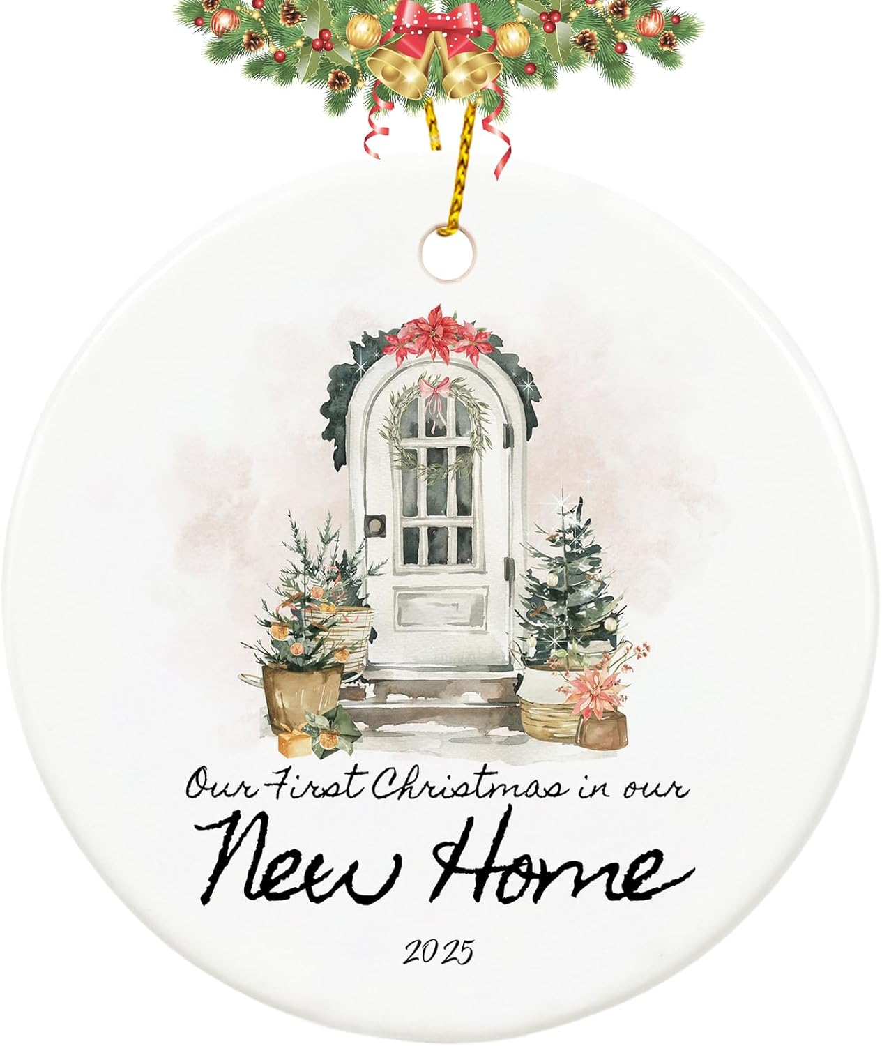 Make housewarming extra special with this ceramic 2025 “New Home” Christmas ornament! Featuring “New Beginnings” messaging and cozy house designs, it’s an ideal gift for friends, family, or couples moving into their dream home. High-gloss ceramic ensures vibrant colors and durability for years of holiday display. Combine warmth of a new address with festive spirit – perfect for realtors, newlyweds, or first-time buyers. Hang it as a symbol of prosperity and joy in your 2025 celebrations.