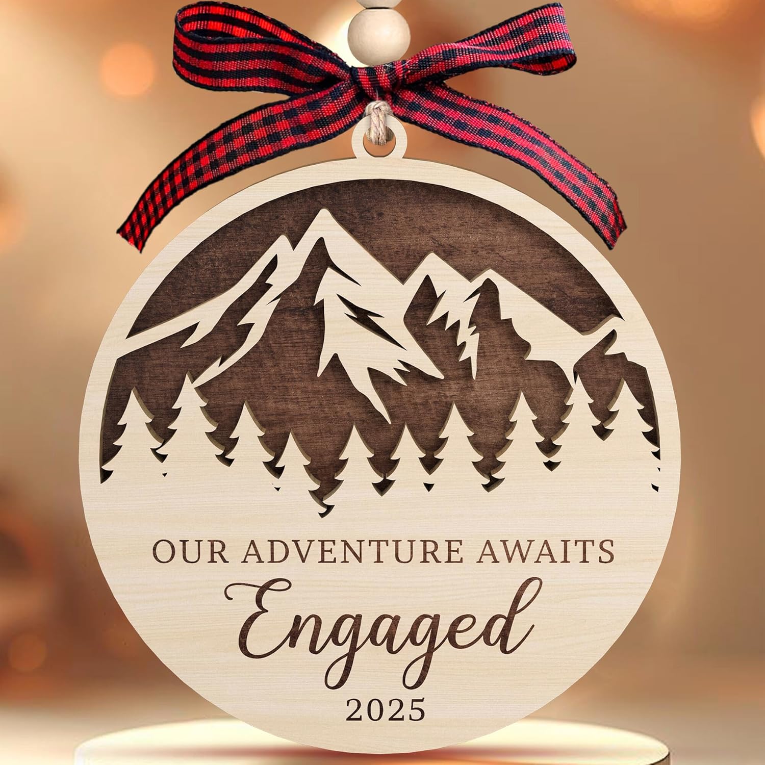 Capture the spirit of adventure and love with the Our Adventure Awaits Engaged Ornament 2025. Crafted from high-quality wood with a rustic mountain design, this ornament is a meaningful keepsake for couples celebrating engagement, wedding announcements, or proposals. Decorate your holiday tree and cherish memories of your journey together.