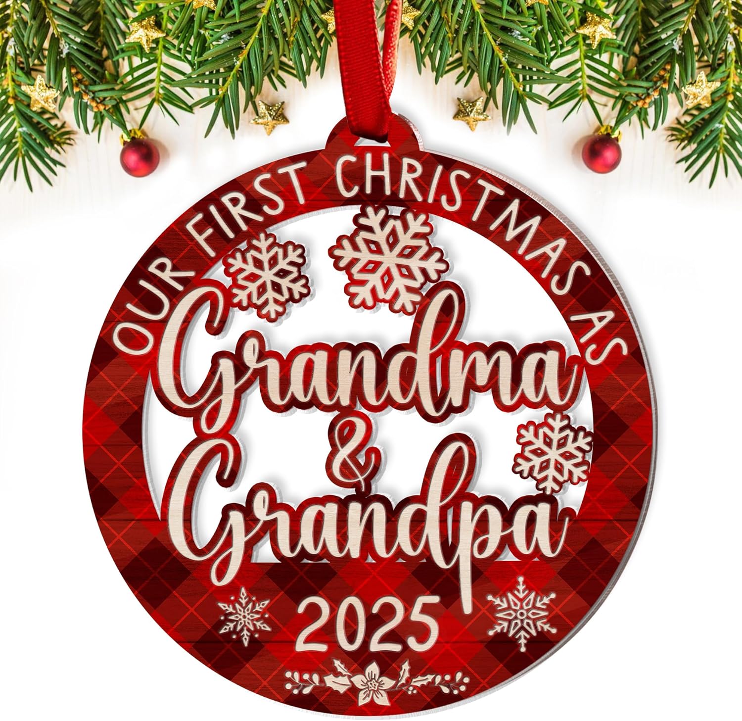 Commemorate the joy of becoming grandparents with the Our First Christmas As Grandma And Grandpa Ornament 2025. Crafted from high-quality wood, this ornament is a thoughtful keepsake that celebrates family, love, and the excitement of welcoming a new generation. Perfect for decorating the holiday tree or gifting to new grandparents, it’s a heartwarming addition to any home.