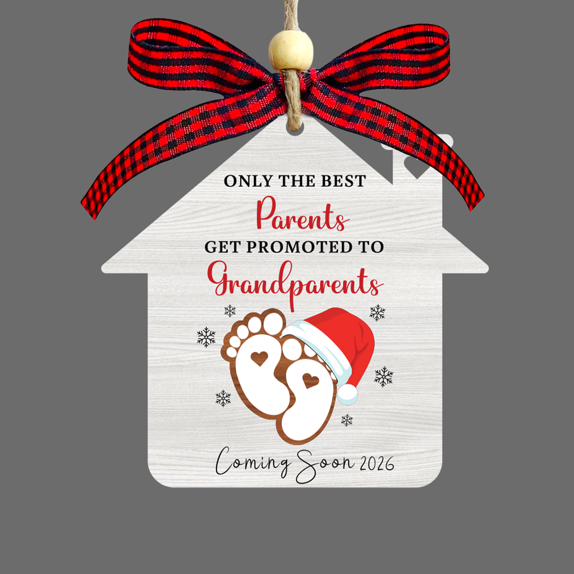 Celebrate a joyful milestone with this Promoted to Grandparents Christmas Ornament 2026. Featuring adorable baby footprints and a warm wooden finish, it’s the perfect keepsake for announcing your pregnancy during the holiday season.