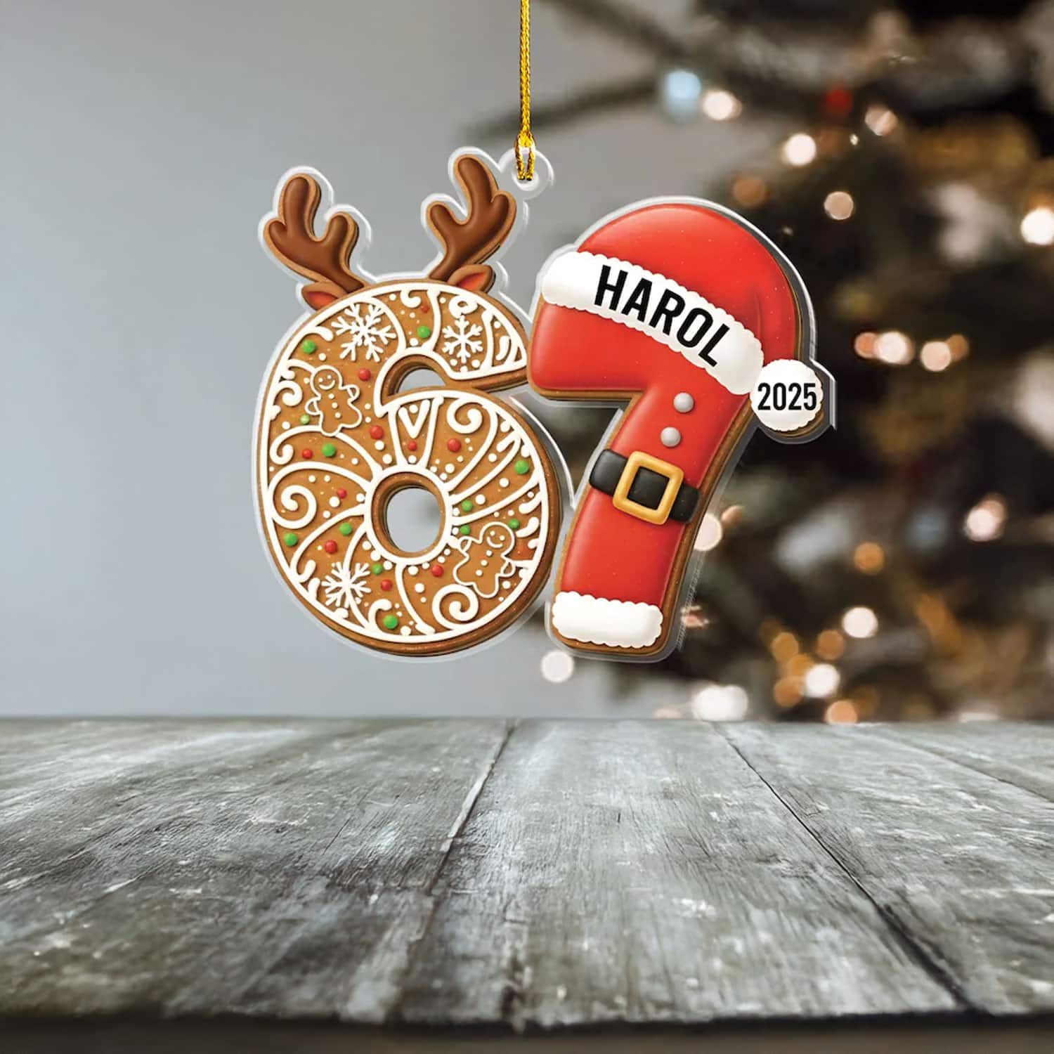 Add festive fun to your holiday tree with this Trending Funny 67 Acrylic Ornament – a cheerful Six Seven Christmas 2025 design featuring gingerbread swirls, Santa suit details, and adorable holiday accents. Perfect for teens, friends, or anyone who loves playful ornaments that bring humor, warmth, and modern Christmas charm to their seasonal decor.